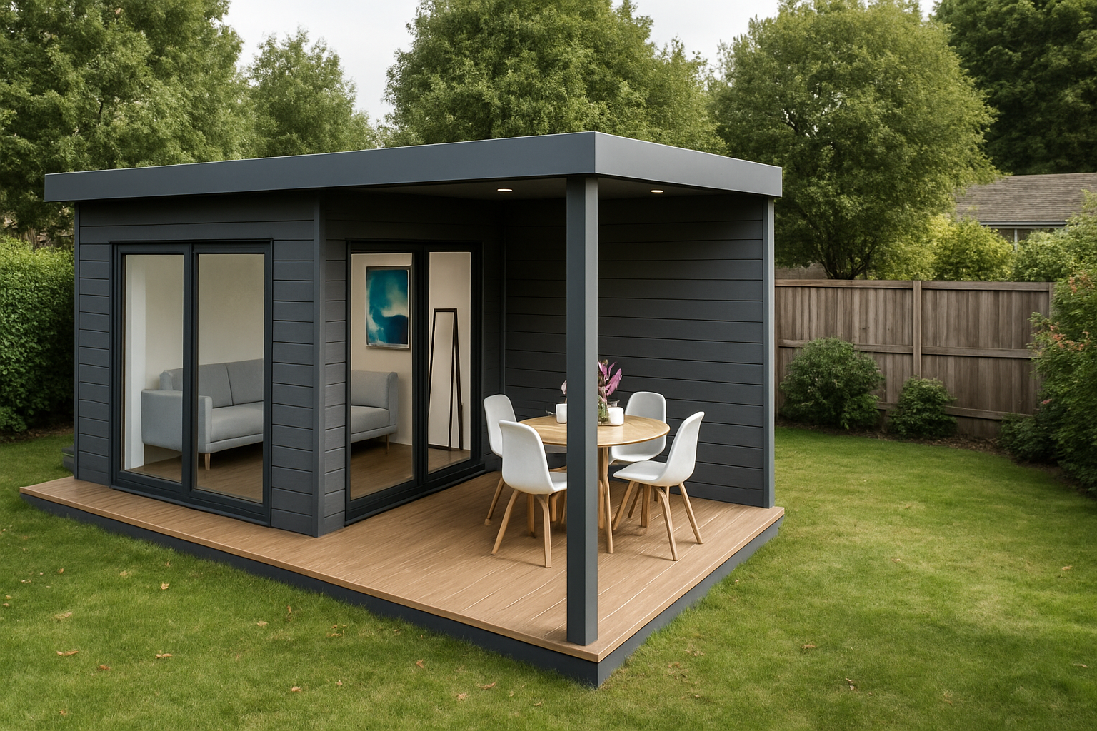 This high-quality, versatile space enhances your outdoor living experience. Proudly made in Ireland, the garden room is a durable and stylish addition to your home. It expands your living space and adds value. Whether you’re hosting friends or enjoying a peaceful retreat, this garden room with covered terrace brings elegance and functionality to your garden.