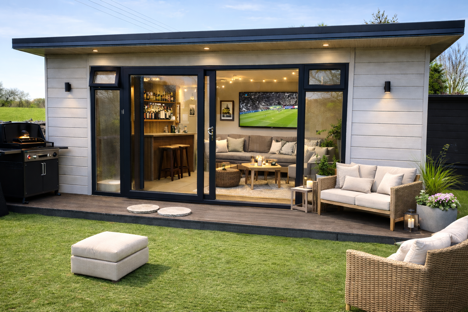 Moreover, our garden rooms are custom-built to your exact specifications. You can choose from a variety of added features, such as a bar or custom shelving, to truly enhance your space. Built with the Irish climate in mind, each room is crafted from durable materials, ensuring comfort and functionality in any weather. In addition, with customisable layouts, finishes, and design options, you can create a space that’s uniquely yours. Ultimately, transform your garden into the heart of family memories with a bespoke garden room.
