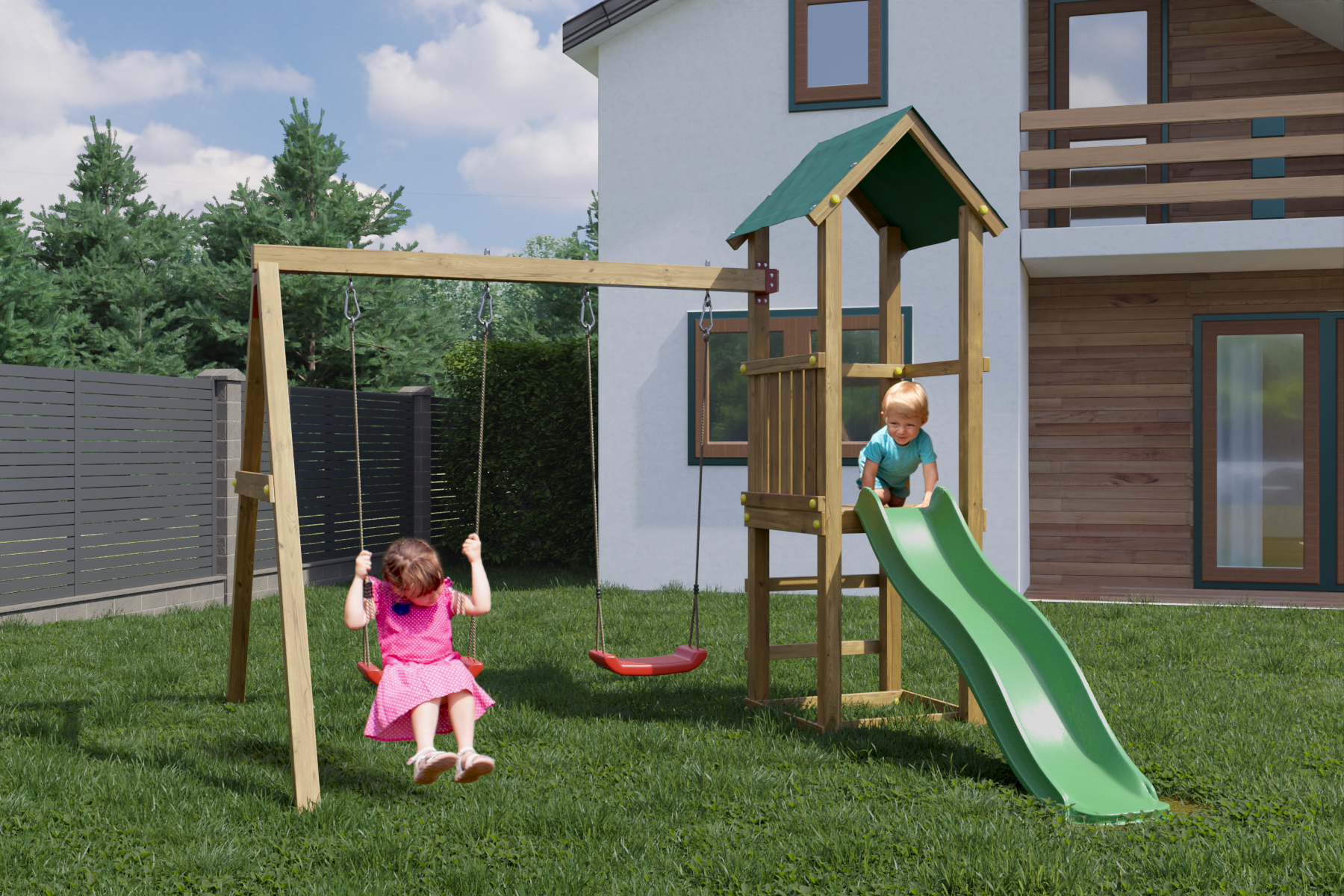 The Fungoo Lucas playground is designed with children’s safety and comfort in mind. All elements are carefully crafted from high-quality materials, and the structure is stable and durable. The slide and swings offer endless fun while helping to develop coordination and physical fitness in young children.