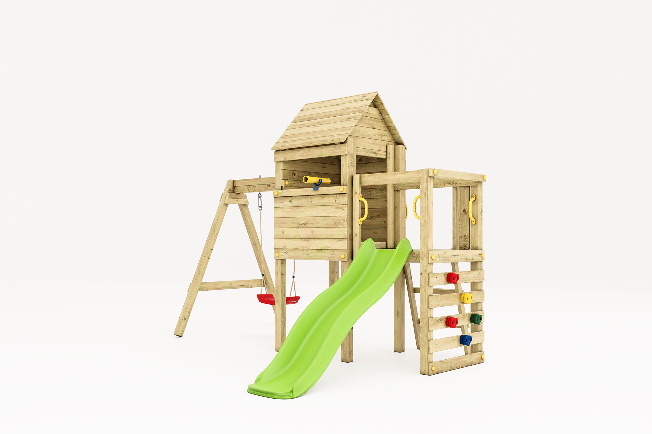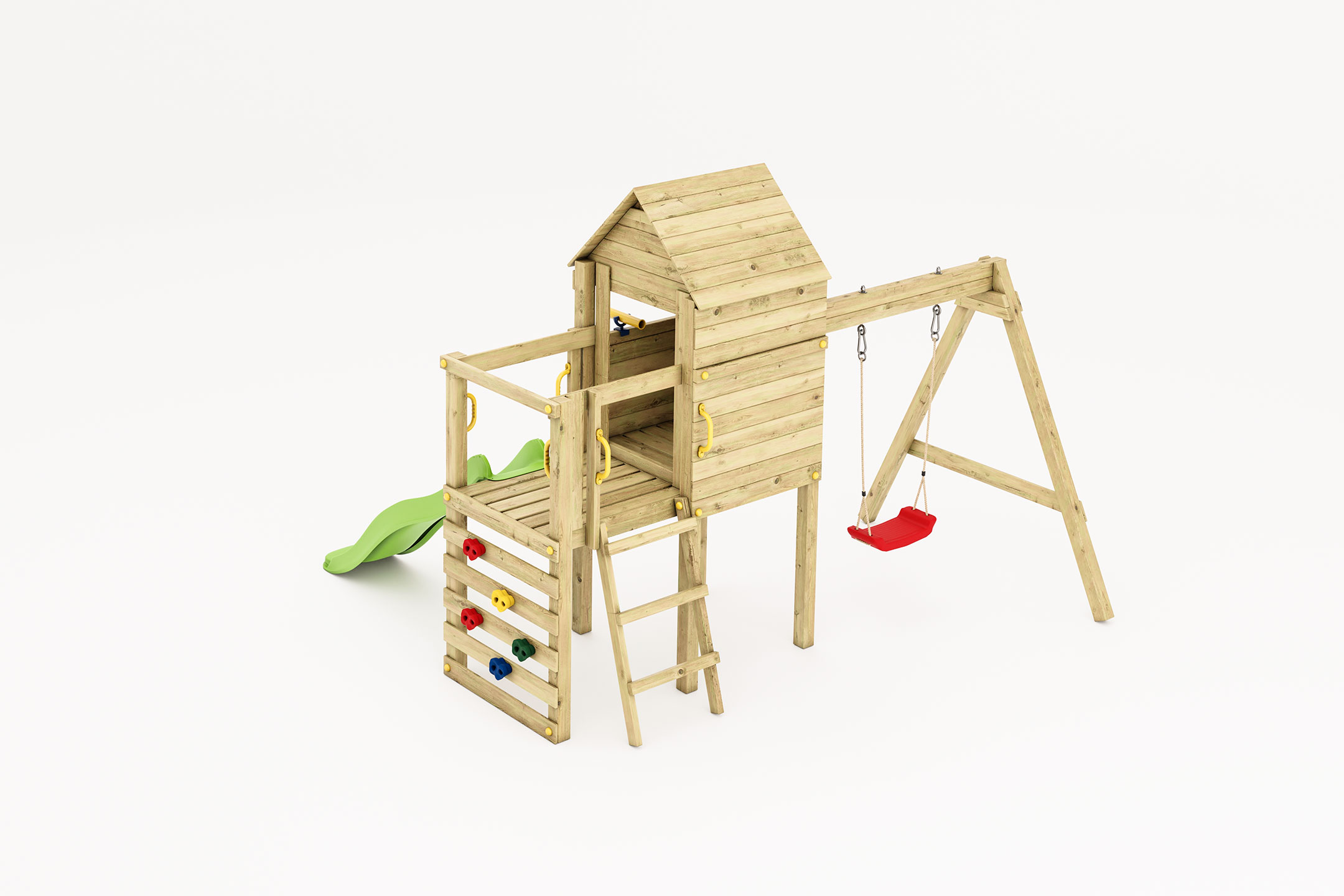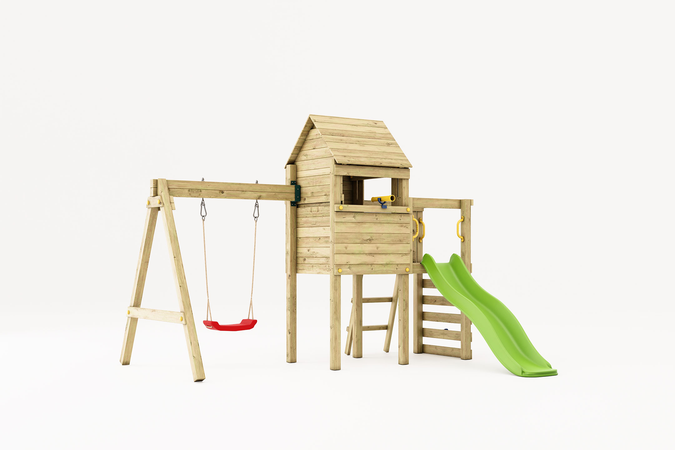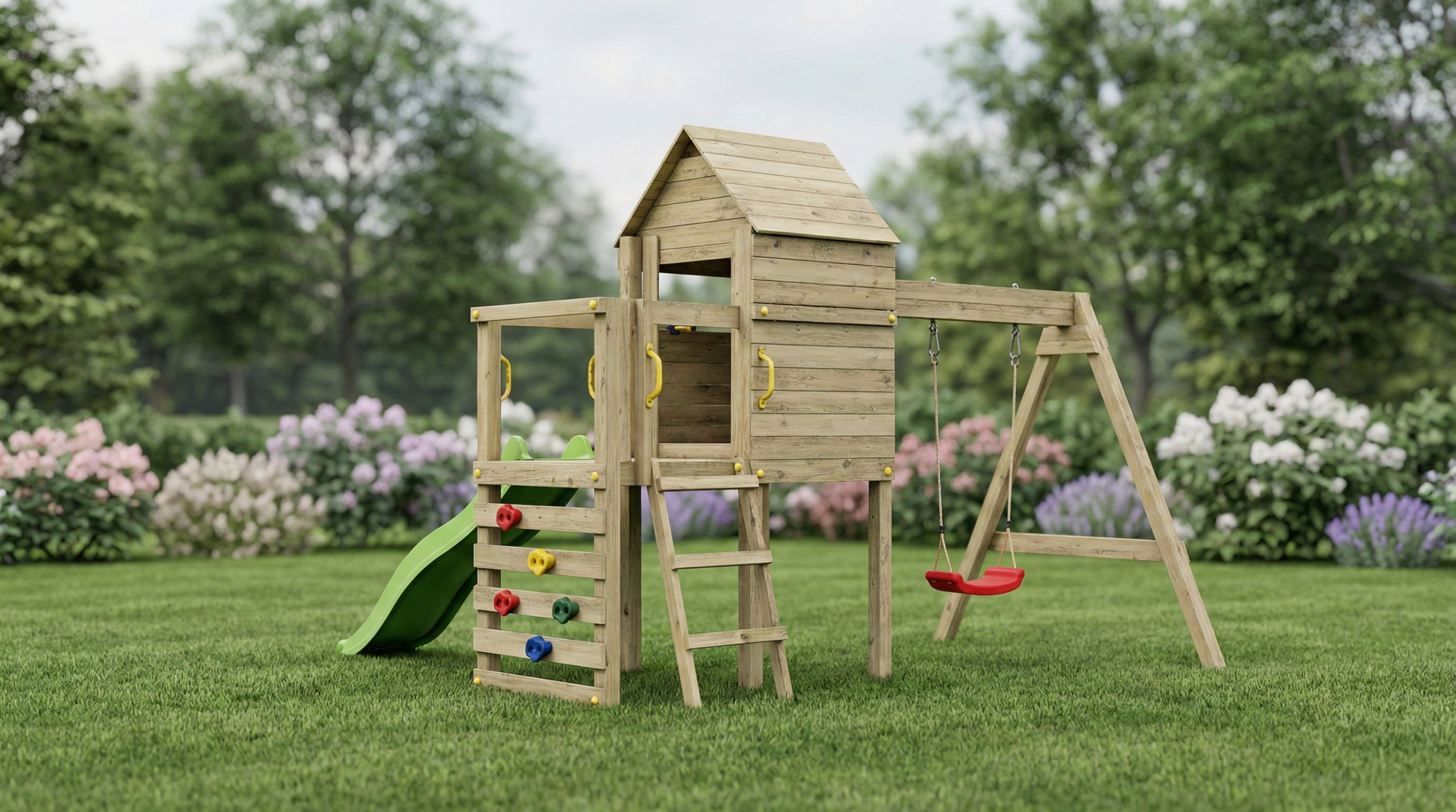 The playset is equipped with a 1.7m slide, offering a joyful ride while maintaining complete safety. Every element of the construction has been designed with durability in mind, ensuring that each slide is as smooth and exciting as the first.