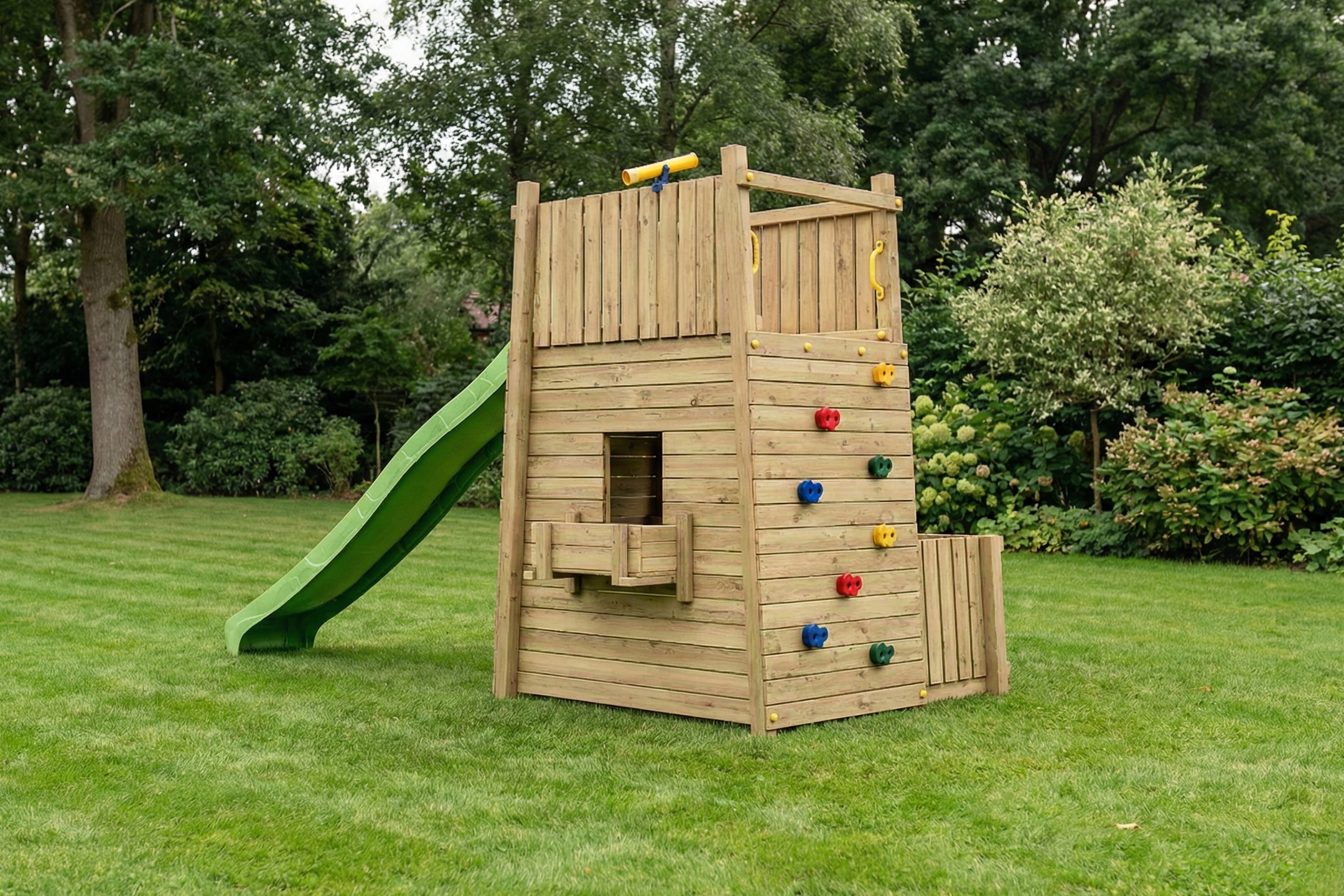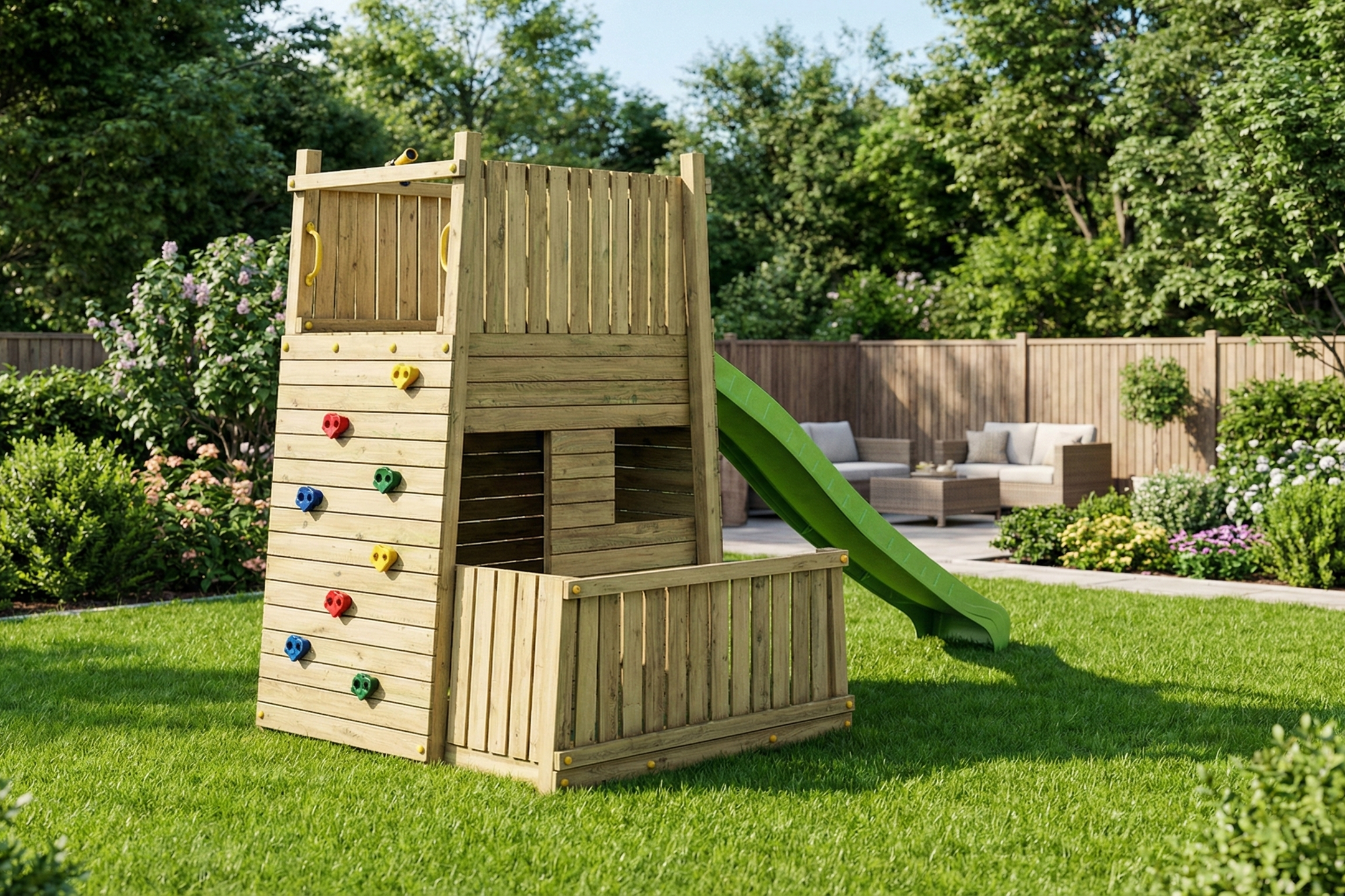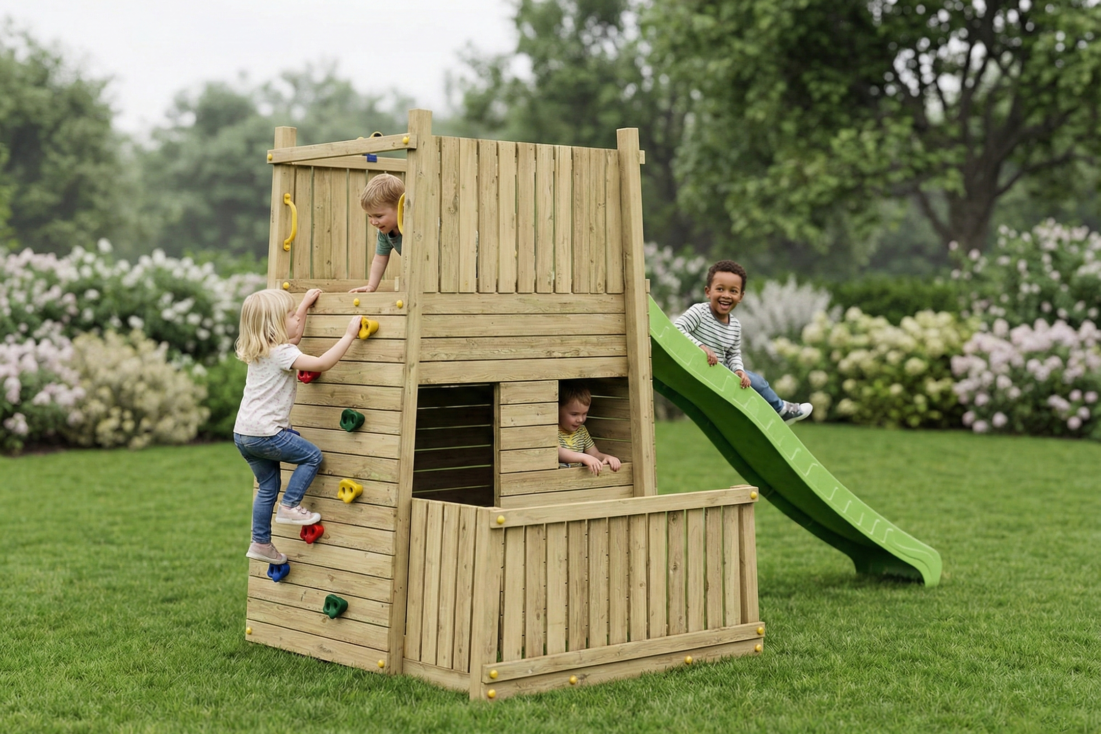 The Fungoo RESORT is designed to be the ultimate backyard destination for active and adventurous children. Combining a multi-level fortress design with premium safety features and diverse climbing elements, it offers the perfect balance of physical challenge and creative play.