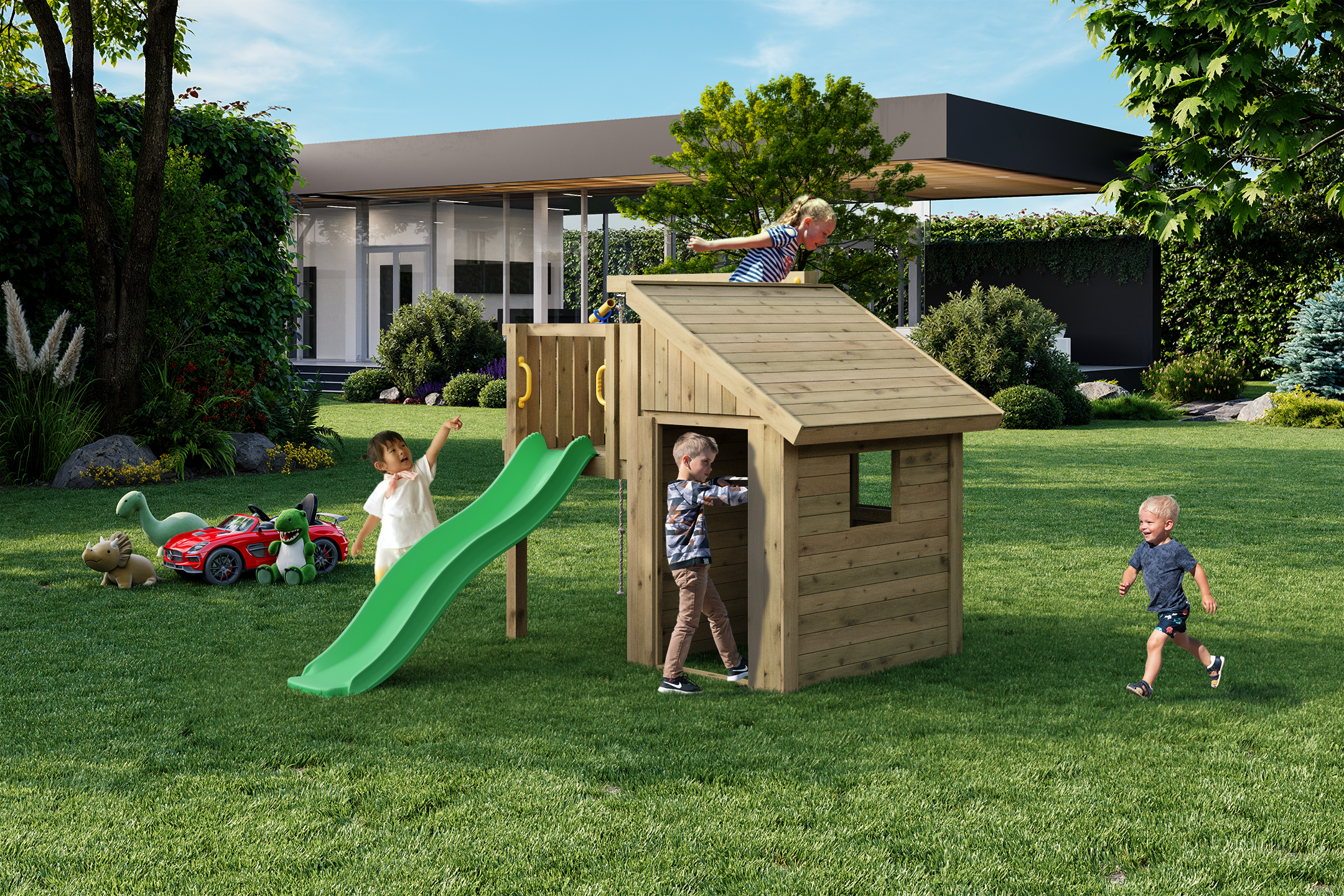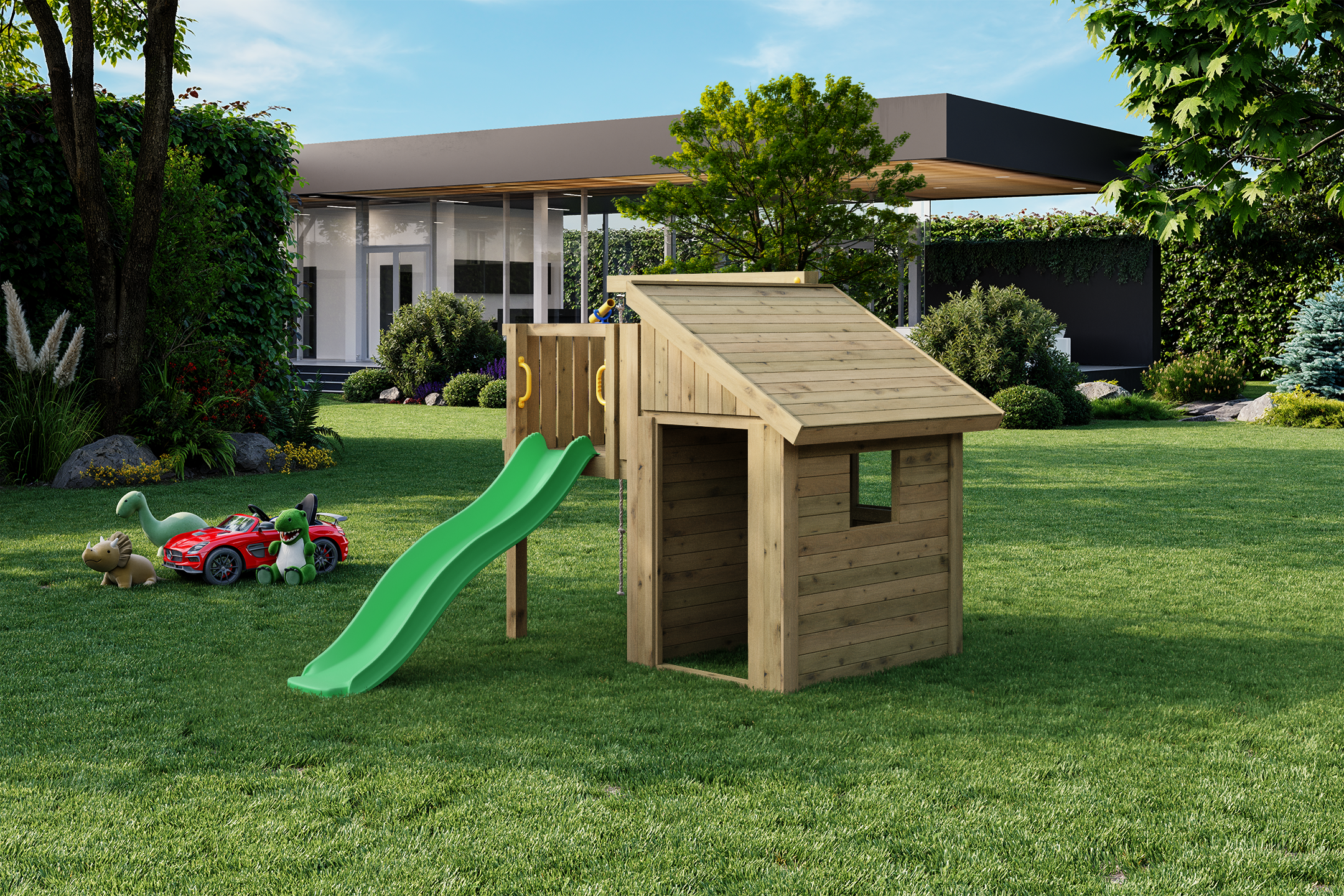 The Fungoo TIBALU is the ultimate backyard retreat, combining a charming wooden playhouse with high-energy climbing and sliding activities. Designed for safety and longevity, it offers a sheltered space for creative play alongside dynamic physical challenges that will keep children engaged for hours.
