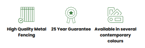 EliteFence is a custom metal fencing that is available in a range of widths and heights to suit all garden shapes and sizes. You can even choose from a range of vertical or horizontal panels and a variety of colours, depending on your personal preferences Made from hard-wearing steel and fully treated with a PVC finish, it withstands all weather conditions, and there is no treating or maintenance needed. It also comes with a 25-year guarantee, giving you that extra peace of mind.